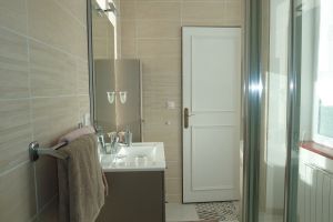 Sa salle de bain de 5 M2 vous séduira avec sa cabine de douche, son meuble avec rangement surmonté d'une vasque et son armoire, toilettes. A votre disposition serviettes de toilettes et gants, Sèche cheveux. accés WIFI Les chambres et la maison sont non fumeurs pour le confort et le bien être de tous.