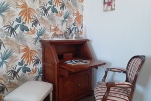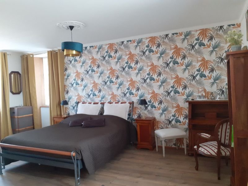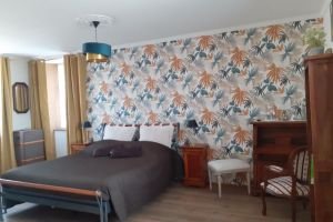 Située au deuxiéme étage. la chambre Chocolat se compose d'un lit double 160x200 cm, de deux tables de chevet ainsi qu'un lit d'une personne de 80x200 cm. Vous y trouverez également un meuble bibliothéque, un secrétaire et d'un espace de rangement, pour un séjour aussi agréable que fonctionnel.